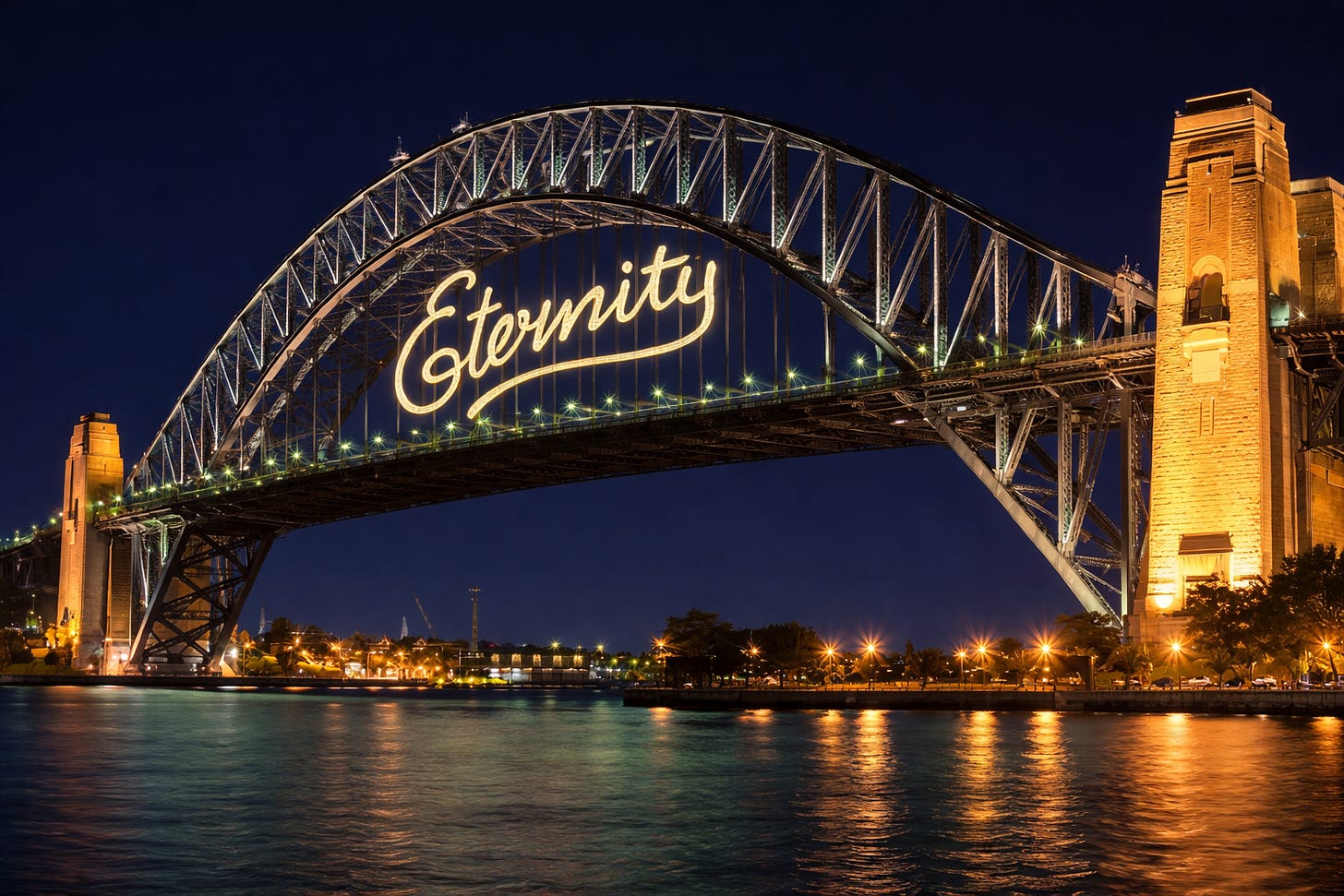 Everything in Sydney seemed big, brash and vibrant. On one of those trips, I recall Nanna drawing our attention to the word Eternity chalked in fading, fluid copperplate on the pavement and passing on the lore that no one knew who the mysterious draftsman was or why he scrawled this one word everywhere.